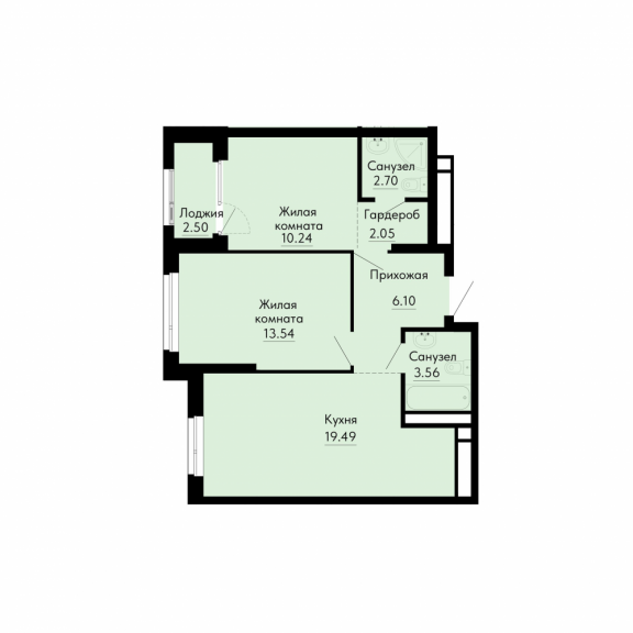 Двухкомнатная квартира №6981